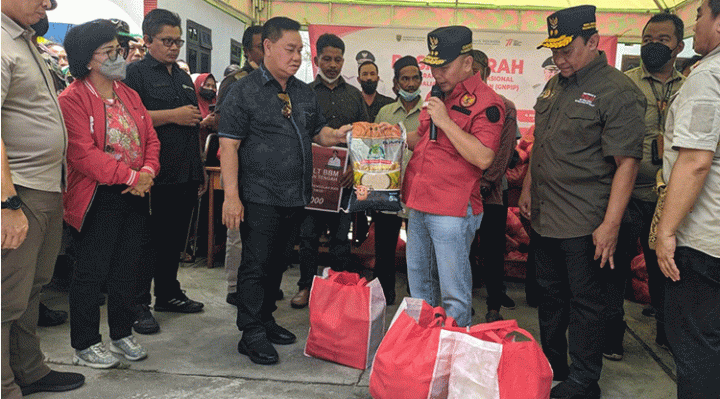 Bantuan paket sembako secara simbolis diserahkan kepada Bupati Kotim Halikinnor. Sugianto meminta bupati segera menyalurkan kepada para korban banjir agar dapat dimanfaatkan untuk kebutuhan pangan mereka.