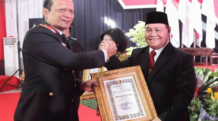 Penghargaaan diberikan kepada Halikin saat menghadiri syukuran Hari Ulang Tahun (HUT) Bhayangkara ke-76 di Gedung Graha Bhayangkara Polda Kalimantan Tengah (Kalteng), di Palangka Raya, Selasa 5 Juli 2022.