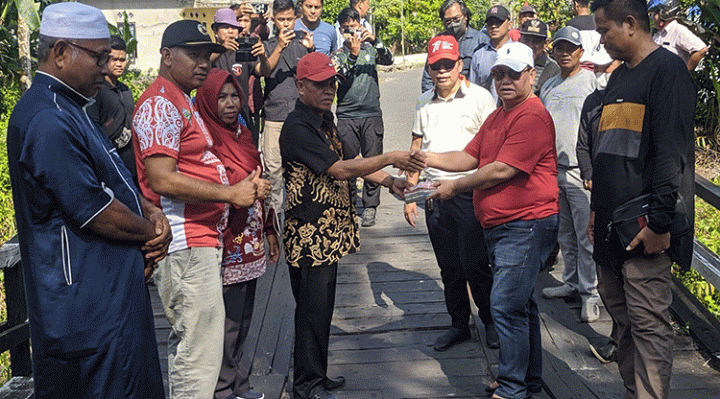 “Sambil menunggu penganggaran perbaikan kami menyerahkan Rp 20 juta dulu. Agar jembatan kayu ulin ini bisa segera diperbaiki dan tidak membahayakan,” kata Halikinnor.