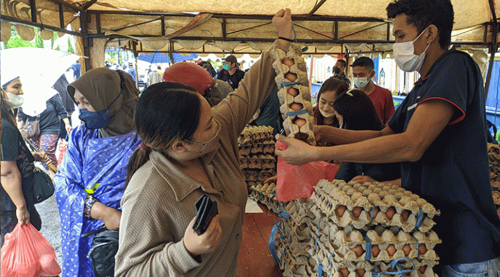 CATATAN.CO.ID, Sampit – Pasar pangan murah yang digelar di Taman Kota Sampit, Kabupaten Kotawaringin Timur, Jumat, 22 April 2022, diserbu warga. Mereka berbongdong-bondong ke lokasi ini meskipun kondisi tengah hujan.