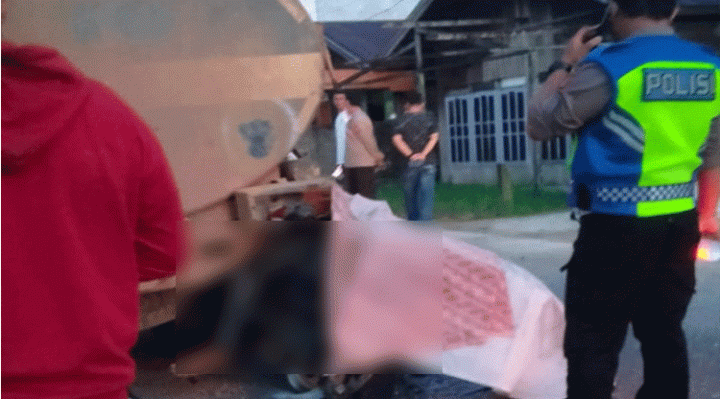 Tidak berapa lama, terdengar dentuman keras di depan rumahnya tersebut. Sehingga membuat sopir truk ke luar dan melihat, kondisi korban sudah terjepit di belakang truk tangki.