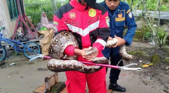 Laporan kemunculan ular masuk permukiman ini terjadi Sabtu, 1 Oktober 2022 dan kini ular telah diamankan oleh perugas Disdamkarmat Kotim. Selanjutnya akan dilepasliarkan di tempat yang jauh dari permukiman warga. (C1 )